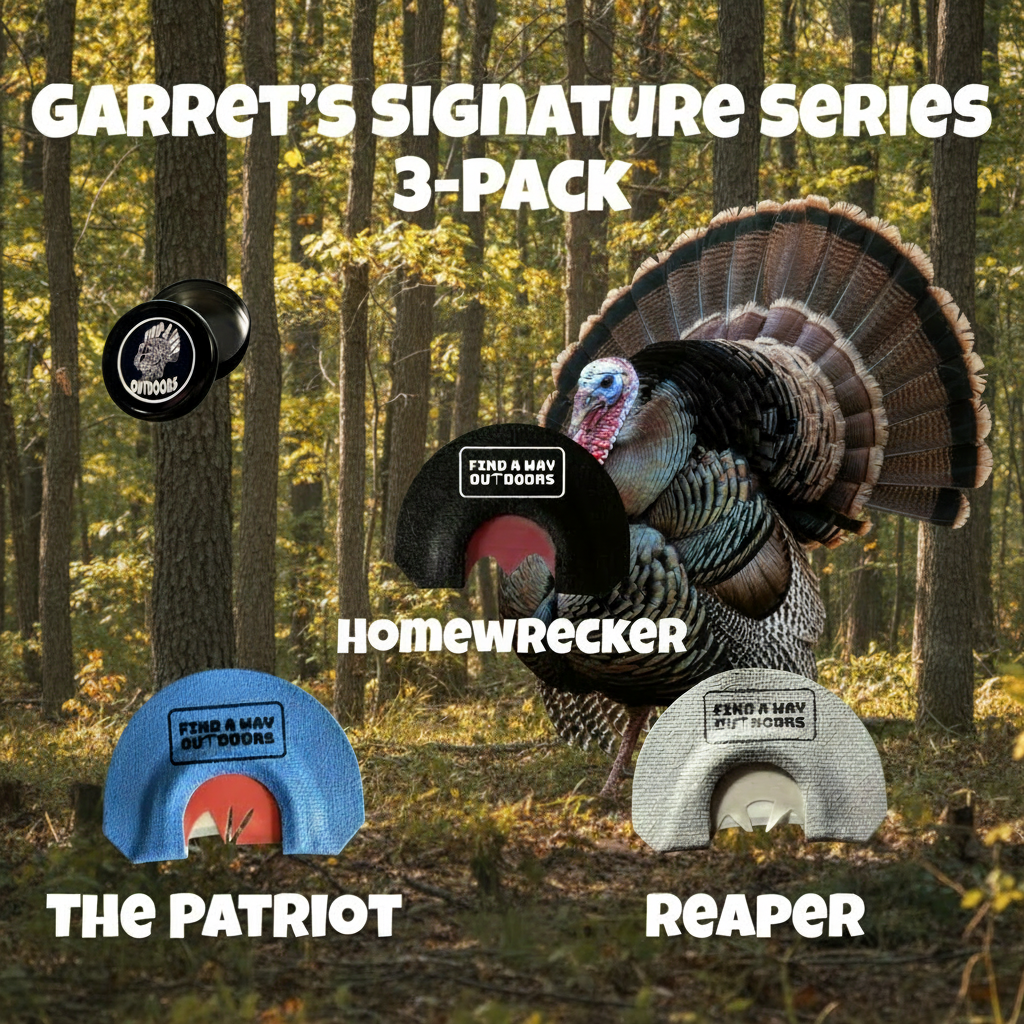 The Homewrecker, Reaper, and the Patriot are included in this set as well as a free tin to store your calls! These are the calls that Garret relies on the most. With these three calls in your arsenal, you should have everything covered!